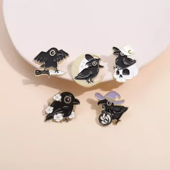 Black Punk Magic Bird Skull Wizard Enamel Pin