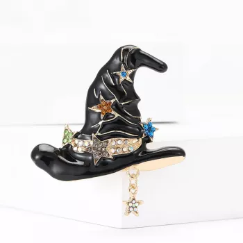 Celestial Witchy Broom & Lamp Enamel Pin Brooch