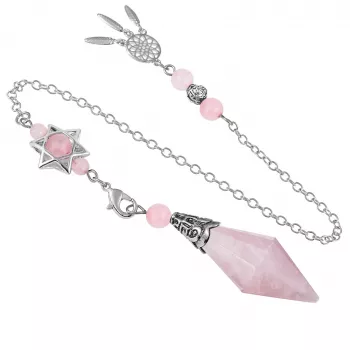 Natural Rose Quartz Double Pointed Faceted Pendant with Star of David Dreamcatcher for Divination & Jewelry