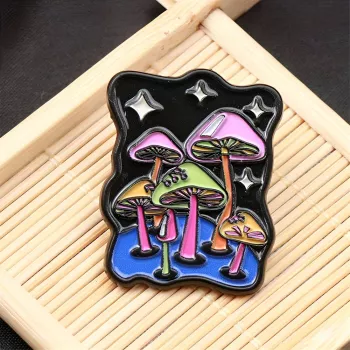 Cute Glass Bottle & Mushroom Enamel Brooch