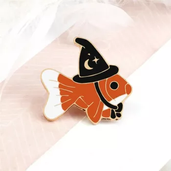 Creative Goldfish with Witch Hat Enamel Brooch Pin
